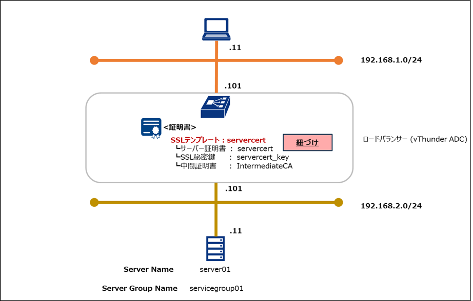 1.ロードバランサーにサーバー証明書(SSL証明書)と秘密鍵、中間証明書(CA証明書)を登録する