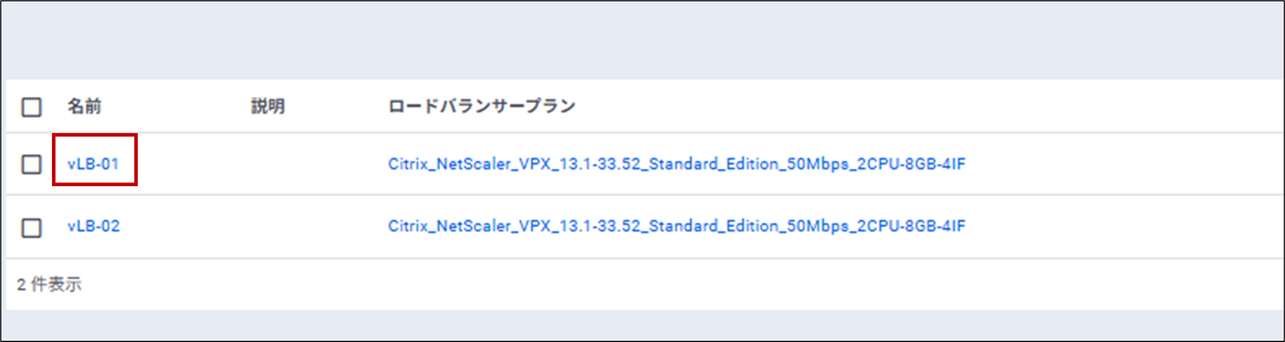 作業対象のロードバランサーの名前を選択します。(vLB-01・vLB-02で同様の作業を行います。)