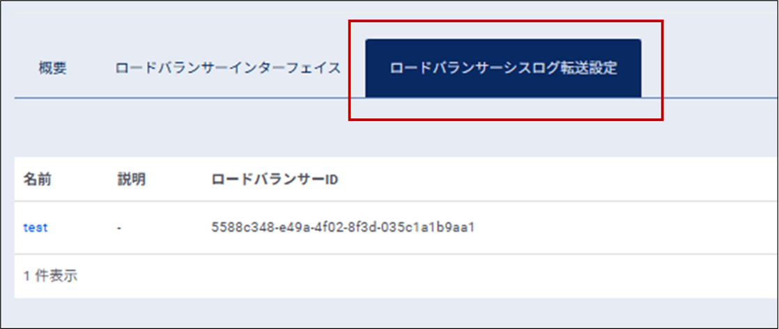 ② [ロードバランサーシスログ転送設定]のタブをクリックします。