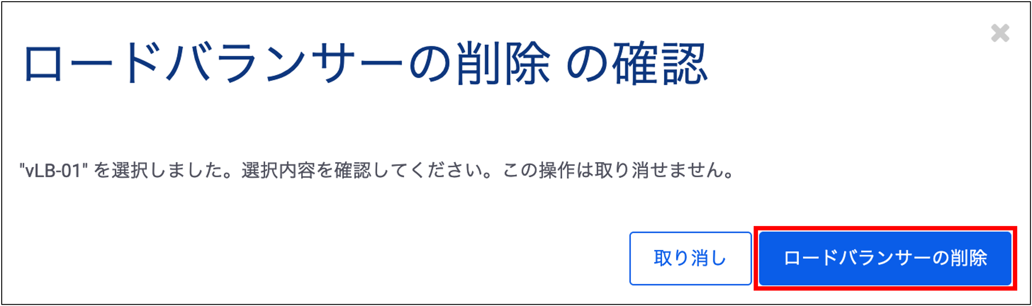 ② [ロードバランサーの削除の確認]画面が表示されます。問題なければ[ロードバランサーの削除]をクリックします。