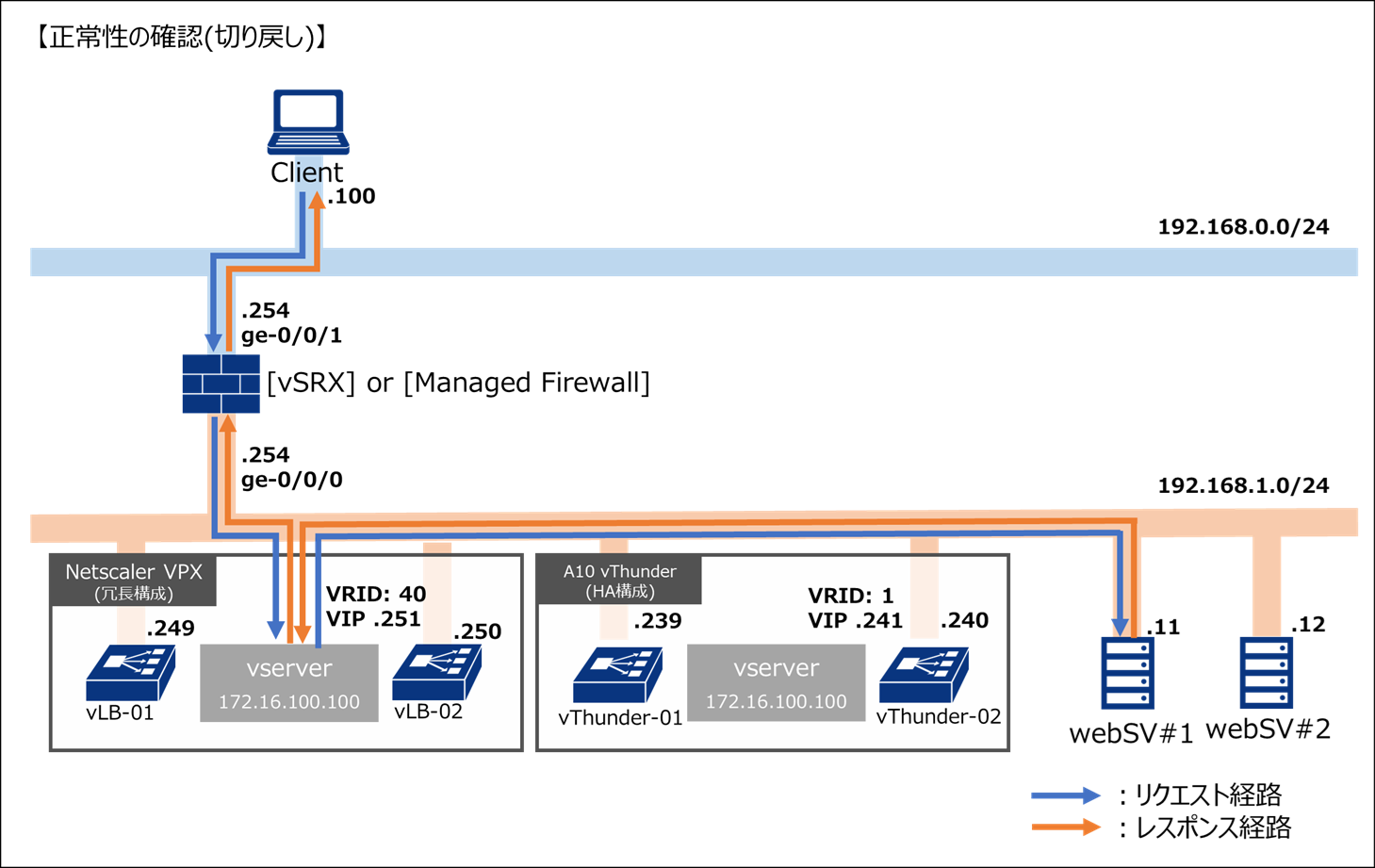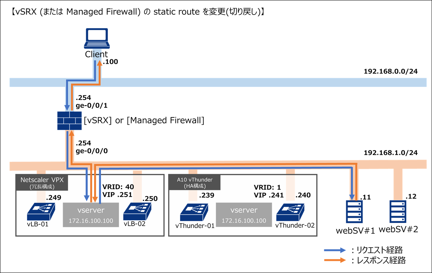 ファイアウォールにてスタティックルートを移行前の定義に変更することで、通信が旧ロードバランサー(NetScaler VPX)側に切り戻されます。