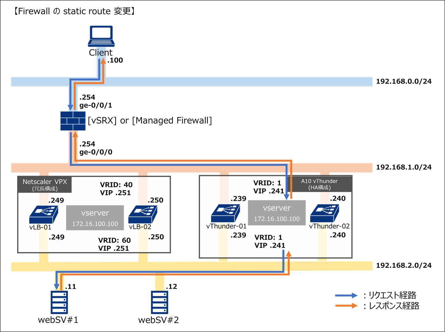 ファイアウォールにてスタティックルートを変更することで、通信が新ロードバランサー(vThunder ADC)側に切り替えられます。