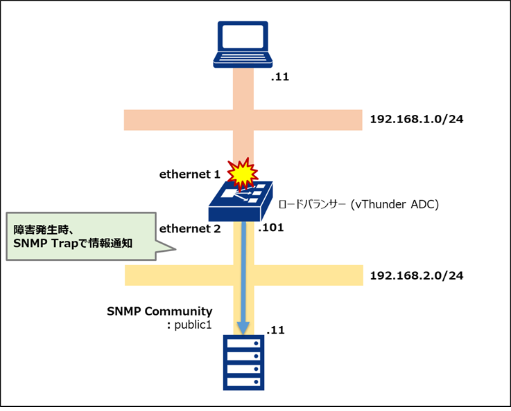 障害発生時、SNMPマネージャー(192.168.2.11)に対してSNMPトラップで情報通知したい